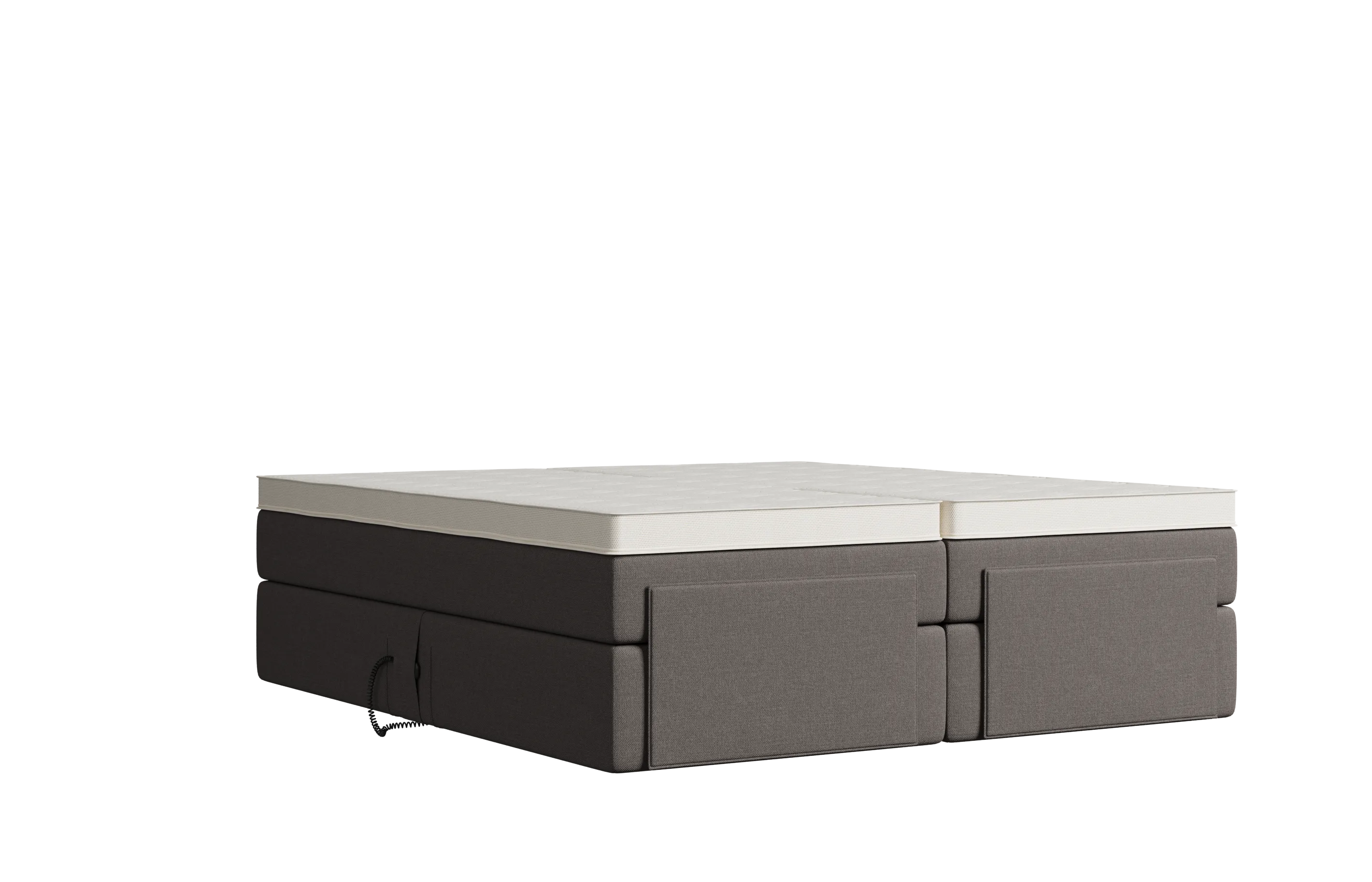 Dauerhaft stabile Unterbox aus Massivholz. Kein Knatschen oder Quietschen. Motor zum Verstellen von Kopf- und / oder Fußende mit leistungsstarken 6.000 Newton. Mit Funk-Fernbedienung.
