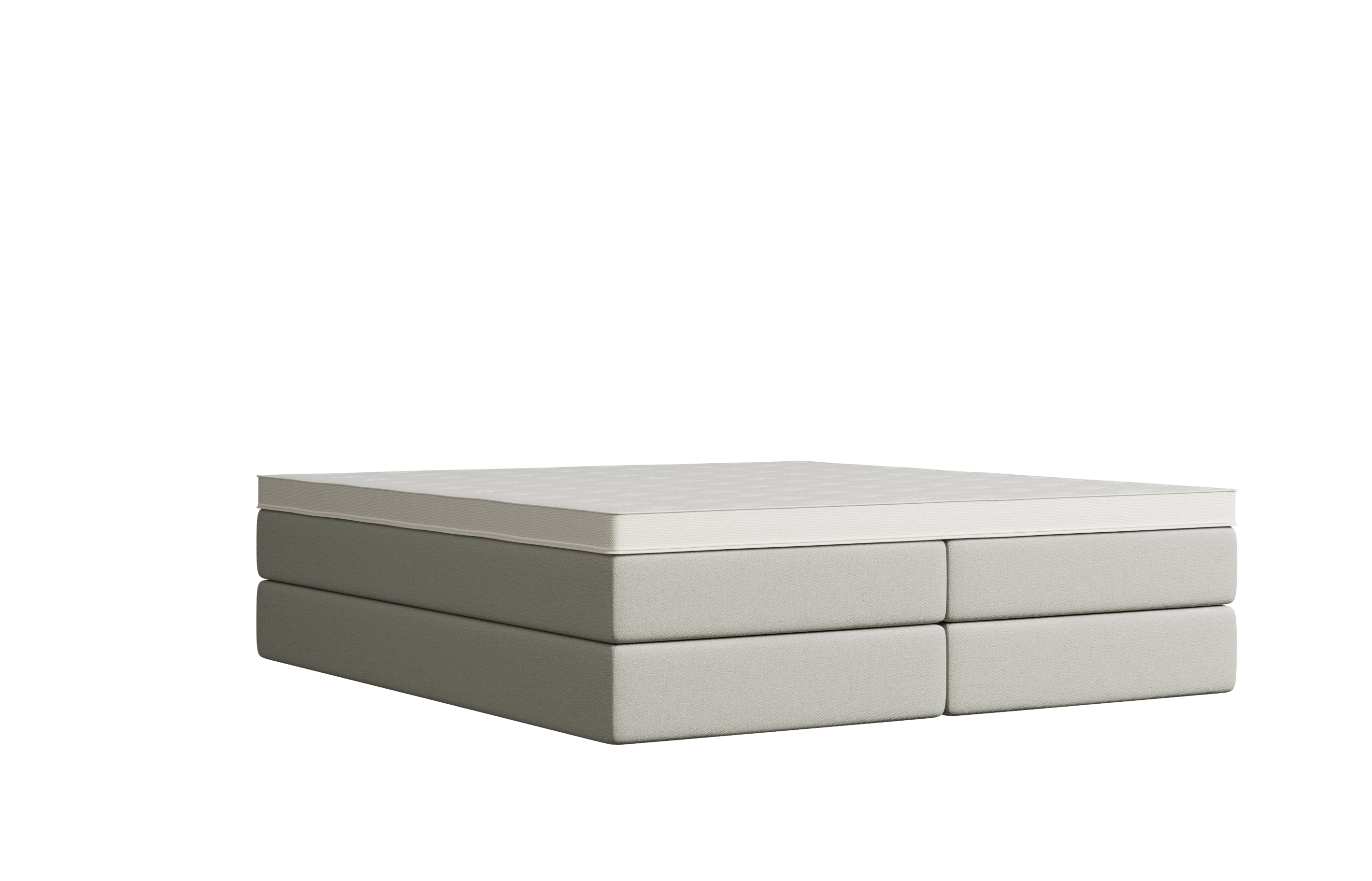 Selber Komfort, anderes Design: Das Bett erhältst du optional mit einem Topper, der in die Matratze integriert ist. Schäume und Federkerne sind identisch wie bei der Variante mit aufliegendem Topper. Optisch ist die Matratze nicht mit Textil, sondern mit einem weißen Doppeltuch bezogen.