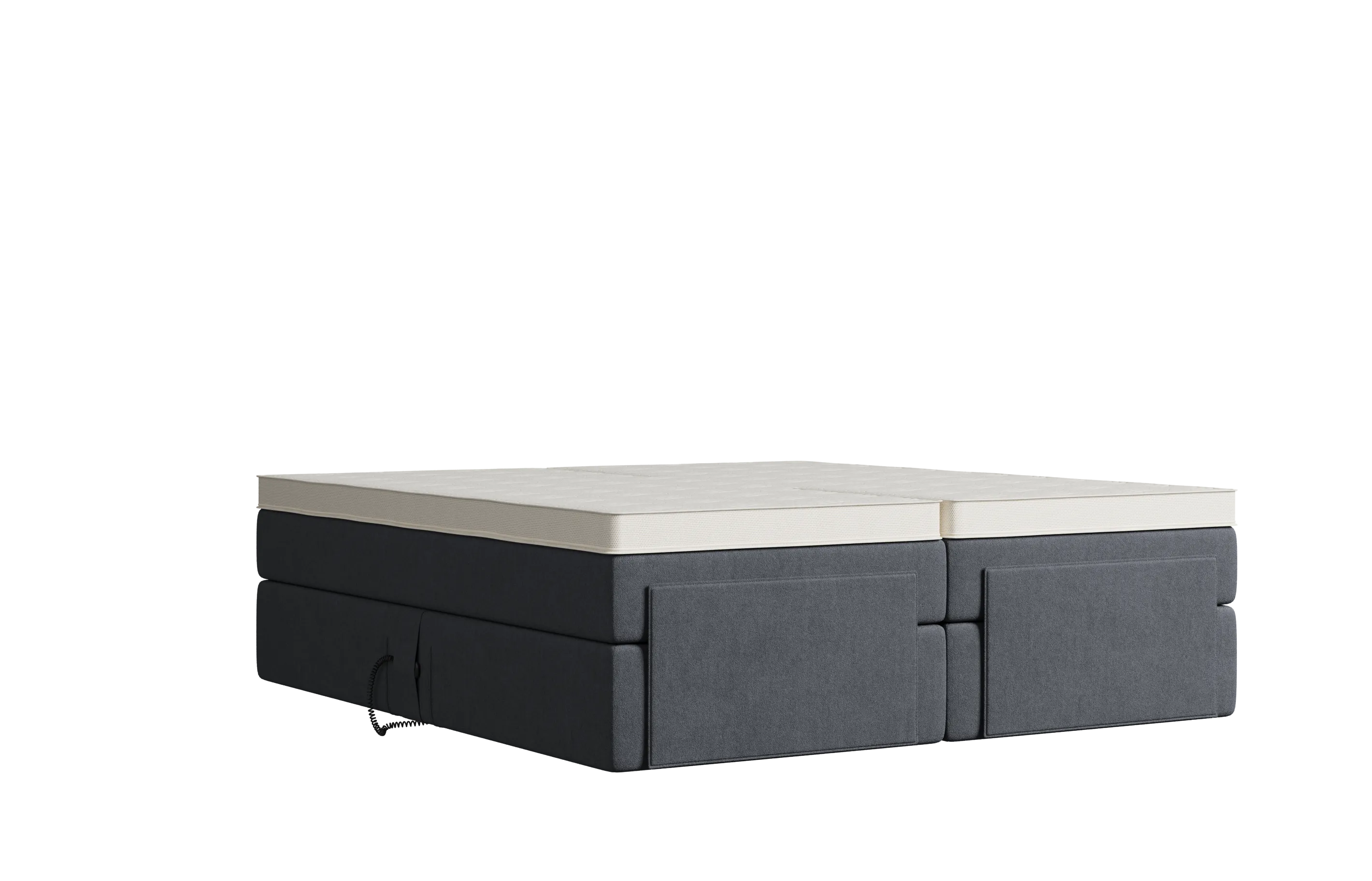 Massivholz-Unterbox mit 7-Zonen-Taschenfedersystem. Kein Knatschen oder Quietschen. Motor zum Verstellen von Kopf- und / oder Fußende mit leistungsstarken 6.000 Newton. Mit Funk-Fernbedienung.